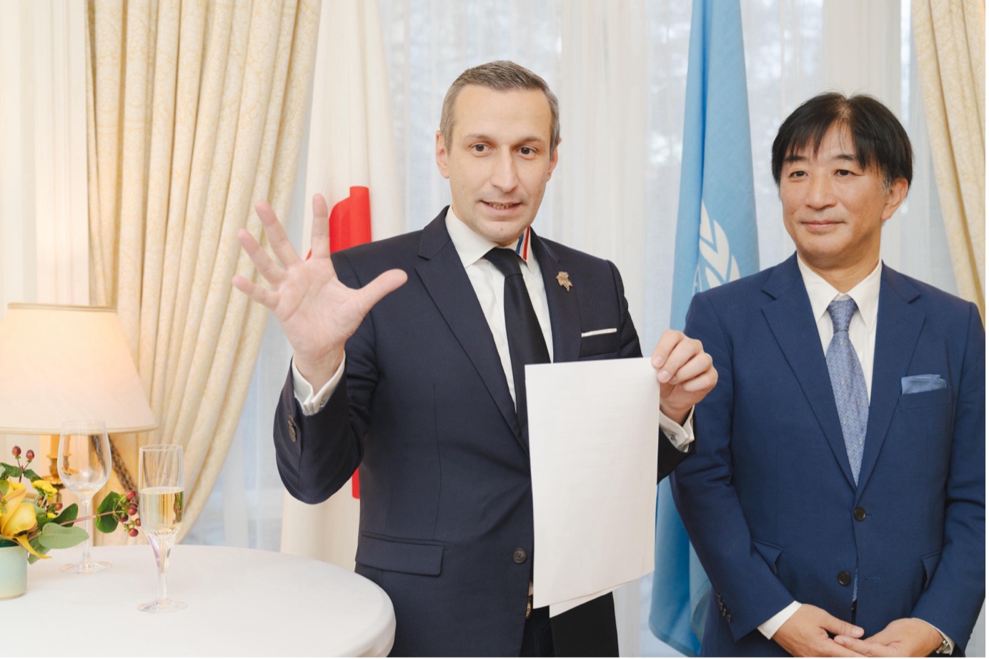 Pour que les ambassadeurs de l’UNESCO puissent valider la proposition des officiels japonais, portée par la délégation nippone auprès de l’organisation, il leur faut connaître le sujet. Le représentant du Japon mentionné au-dessus, va donc s’attacher pendant le temps que dureront les délibérations (généralement 2 ans) à promouvoir le saké et à le mettre notamment en avant lors de réceptions officielles. C’était le cas le 4 octobre dernier dans une petite fête donnée par l’ambassadeur et le 11 octobre dans une réception au siège de l’institution où toutes les délégations de l’UNESCO étaient conviées. Notre association avait pour délicate mission de préparer des sakés et d’assurer le service en présentant les différentes catégories de cette boisson.