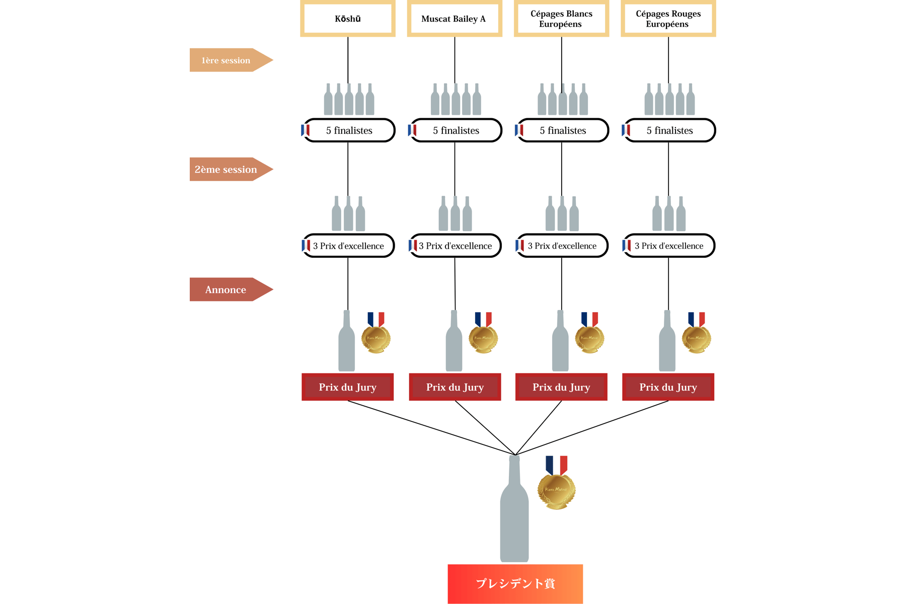 - Les vins doivent être des vins japonais confectionnés et commercialisés selon la Loi Japonaise, et conformes aux lois et règlements en vigueur au Japon. Par ailleurs, le vin doit être scellé avec un système de bouchon non réutilisable.