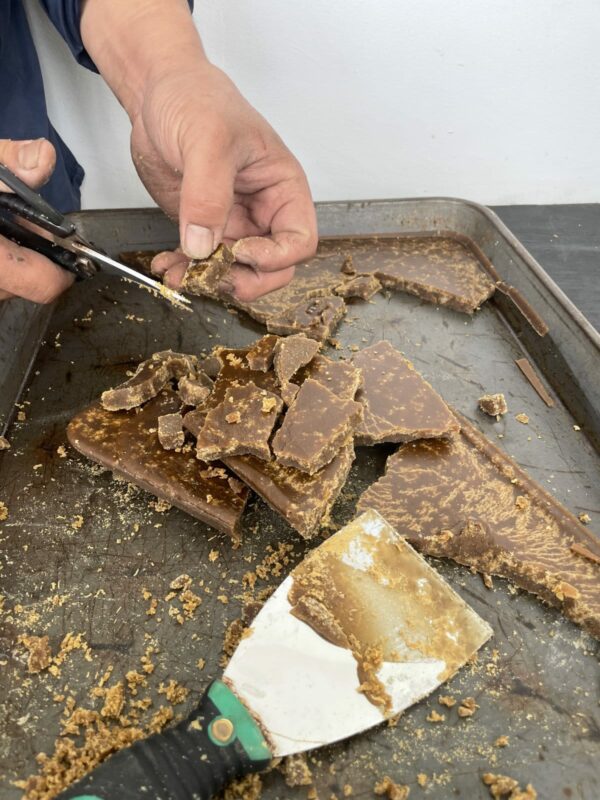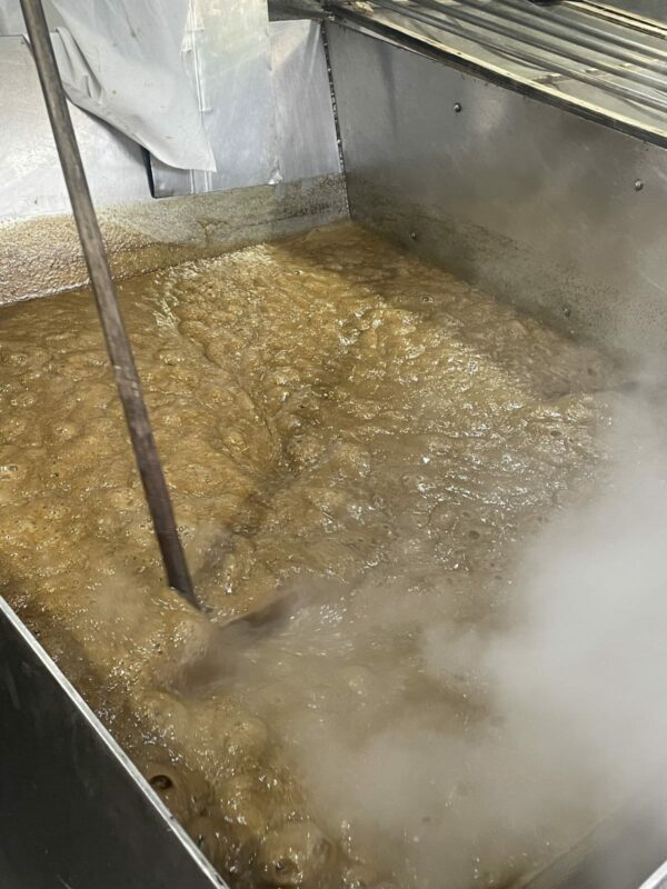 また、黒糖を焼酎に変える際には、固形の黒糖を溶かして使うというルールがあり、そのために食用石灰を加えて煮詰める工程が必要です。