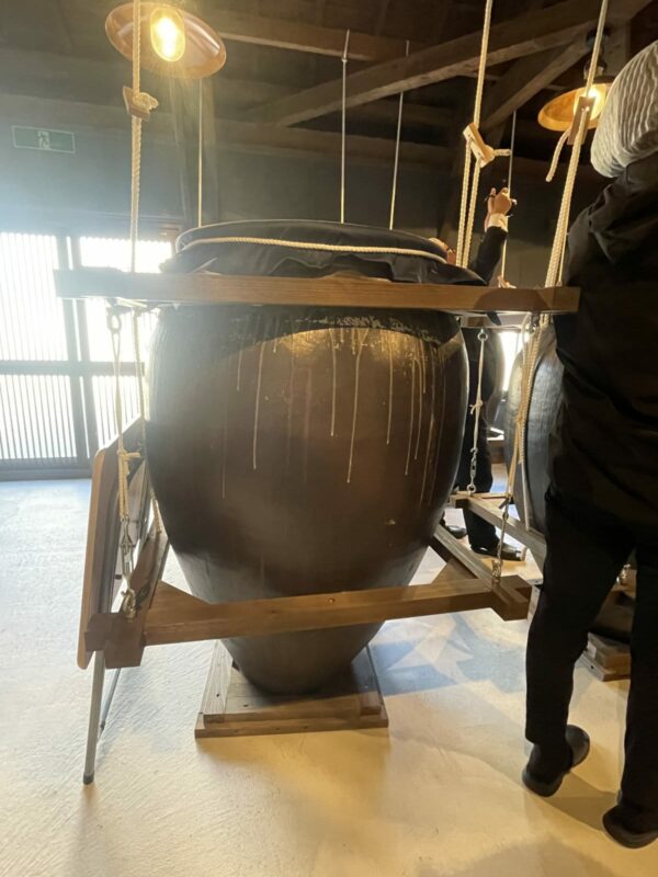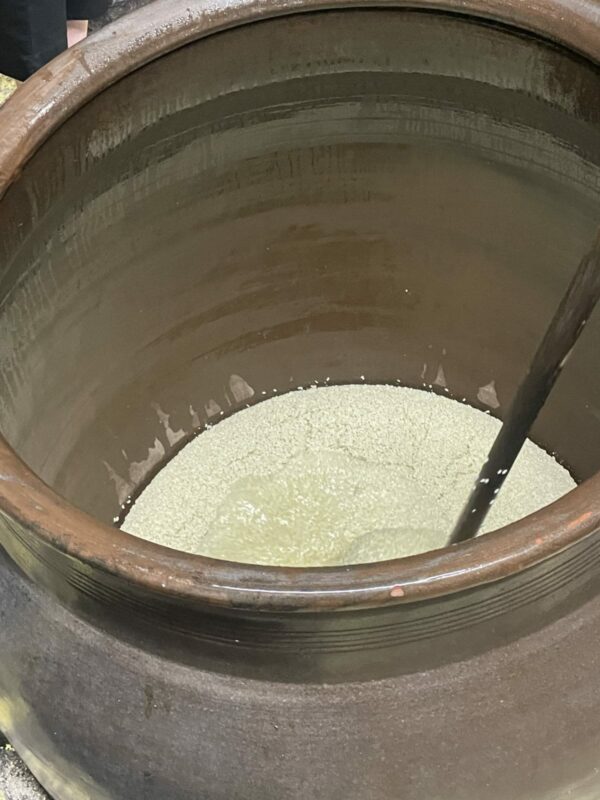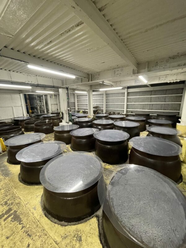 一次仕込み用の和甕を見学。150kgずつ、4つの甕に分けて仕込みます。