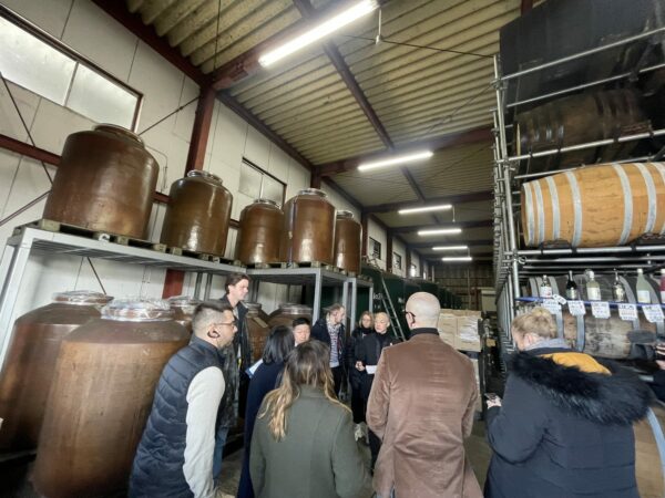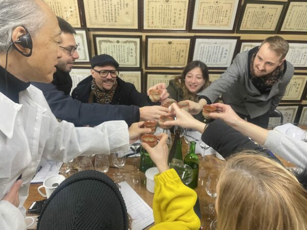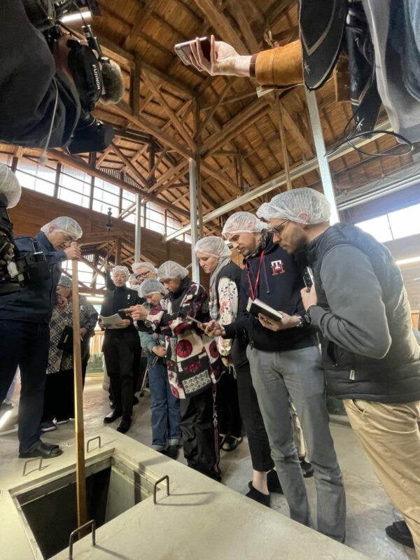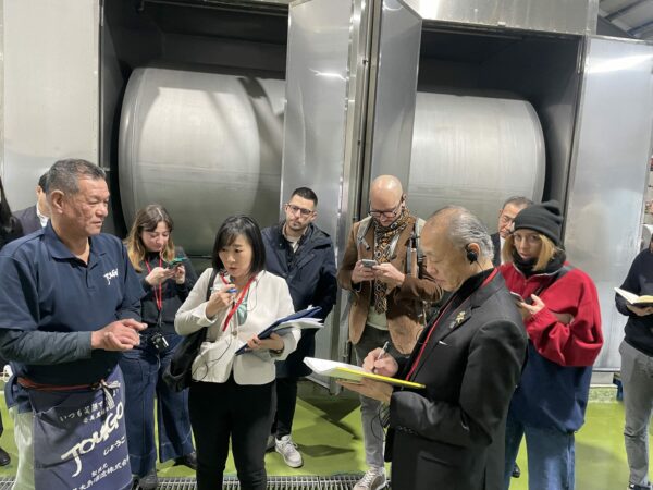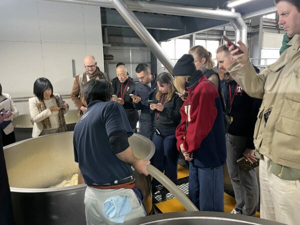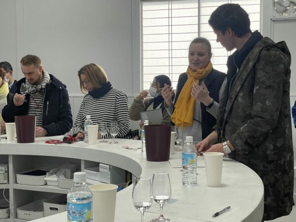 研修では、受賞蔵などを訪問して酒造りを学んだり、その地域の歴史や⽇本の⾷⽂化に造詣を深めるほか、セミナーなどの場では多くの飲⾷関係者、各県や団体の関係者、また⼀般の⽅々と交流を深めます。訪問先では、フランスの蒸留酒業界の感性、感度を伝えていきます。