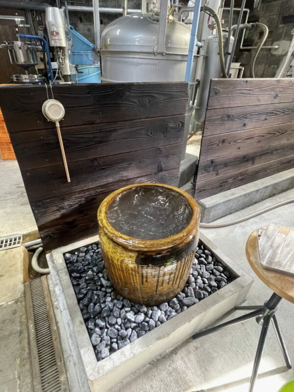 固形仕込みの熟成中の浜千鳥2年と7年熟成のものを直接甕から注いでいただいてテイスティングをしました。