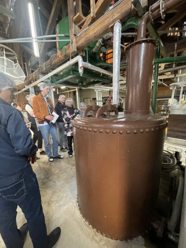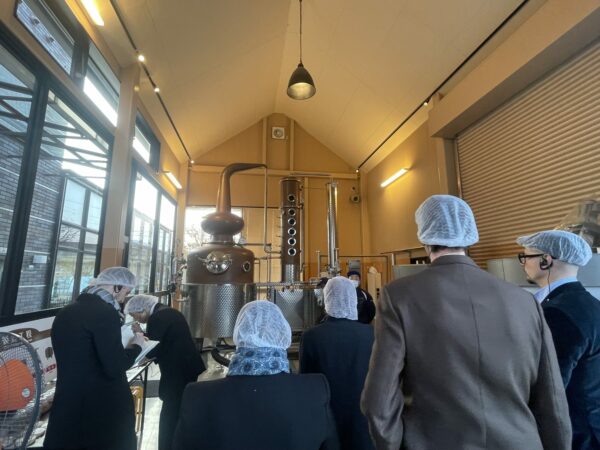 蒸留についても学ぶことができました。目前のポットスチルを見ながら、皆がとても興味深く話を聞いていました。