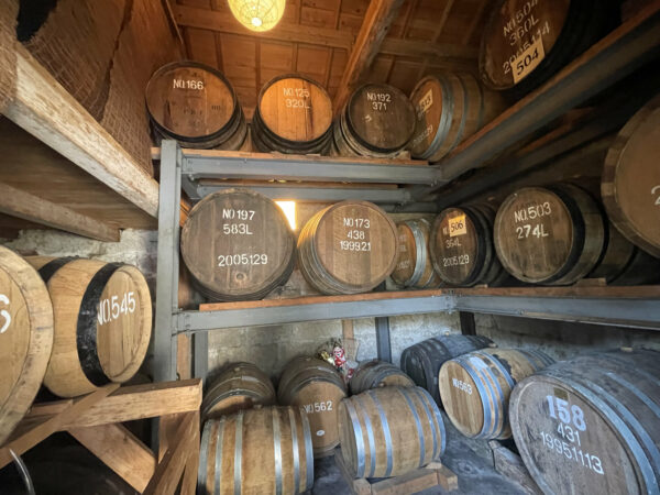全甕仕込みで使われる甕、蒸留器などを見学したのち、樽貯蔵庫へ。