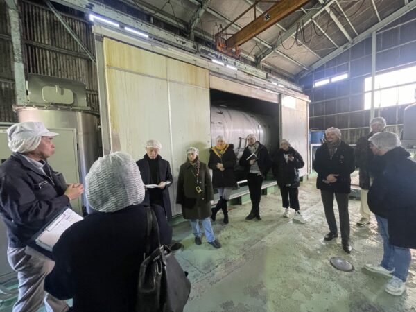 今回の研修旅行初めは弥生焼酎醸造所の訪問から。1922年に女性が創業したこの家族経営の蔵では味濃く香り高い焼酎を100年以上作り続けています。