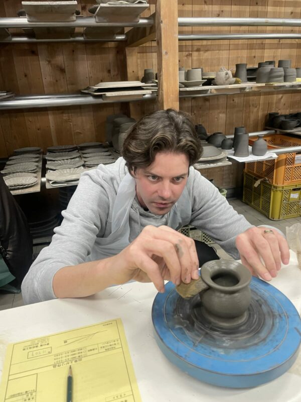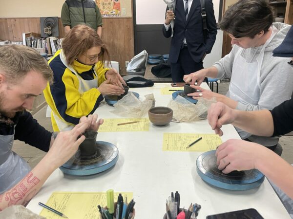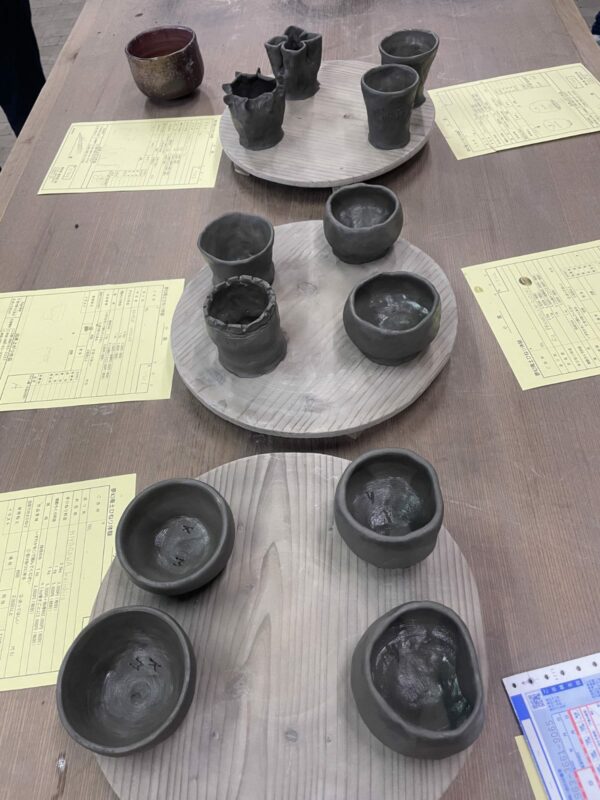 今回、ロクロで成形する作業を体験しました。皆、思い思いの形の作品を作り、窯元で焼いていただきます。焼きあがった作品がフランスに届く日が待ち遠しいです。