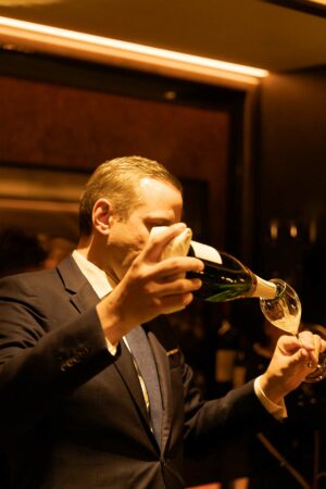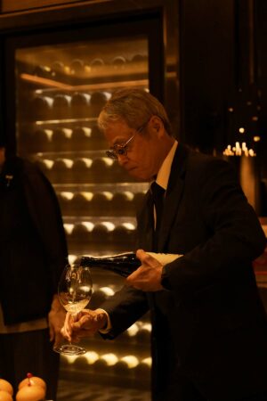 この宮廷だった豪華なラグジュアリーホテルにある特別室 La Caveには名前の通り数多くの厳選されたワインが保管されており、2000本以上ものグラン・クリュが揃えられています。グザビエ・チュイザ審査員長がセレクトした数々のワインもお楽しみいただきました。