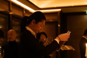 日本酒コンクールでは、6部門1,223銘柄から、小西酒造株式会社(兵庫県)「超特撰白雪伊丹諸白大吟醸」が最高賞のプレジデント賞に輝きました。また、本格焼酎・泡盛コンクールでは、8部門197銘柄から、株式会社松藤(沖縄県)「松藤 粗濾過44度」が本年度のプレジデント賞を獲得しました。Kura Masterではこれまではソムリエが日本酒を、バーマンが本格焼酎・泡盛を審査していましたが今年はその垣根を無くしてソムリエも本格焼酎・泡盛を審査し、バーマンも日本酒を審査するという試みを実施し、MOF(フランス国家最優秀職人章)9名を含む123名のプロフェッショナルにより審査が行われました。