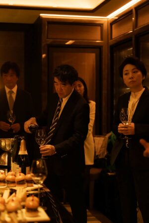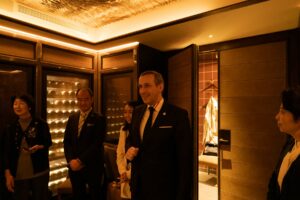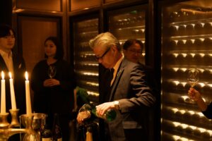 グザビエ・チュイザ審査員長がシェフソムリエを勤めるホテル・ド・クリヨンの特別室、La Caveにて、賞受賞式のためにパリへお越しになった蔵元様の歓迎会を開催いたしました。